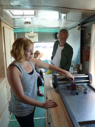 She’s on a 9+ month tour all over the country, and into Canada, too. She’s visiting schools, art spaces, city parks, music festivals, craft shows, parties, and anywhere else that has an interest in learning about printing the old fashioned way.